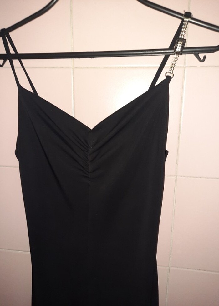 SİYAH TULUM, ASKISI TAŞLI VE COK ŞIK, VE RAHAT sayılı giyilmiştir sırt dekolteli