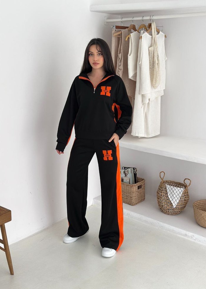 Kadınlar için rahat kesim, uzun kollu, yüksek yakalı ve 'H' baskılı siyah turuncu eşofman takımı. Yumuşak ve sıcak kumaştan, günlük kullanıma uygun şık tasarım. ✨New model 3 lu Set ⭐ Koton Double Face Owersize bol kalıp ☀ S1 M2 L1 XL1 XXL1 KOD:1024