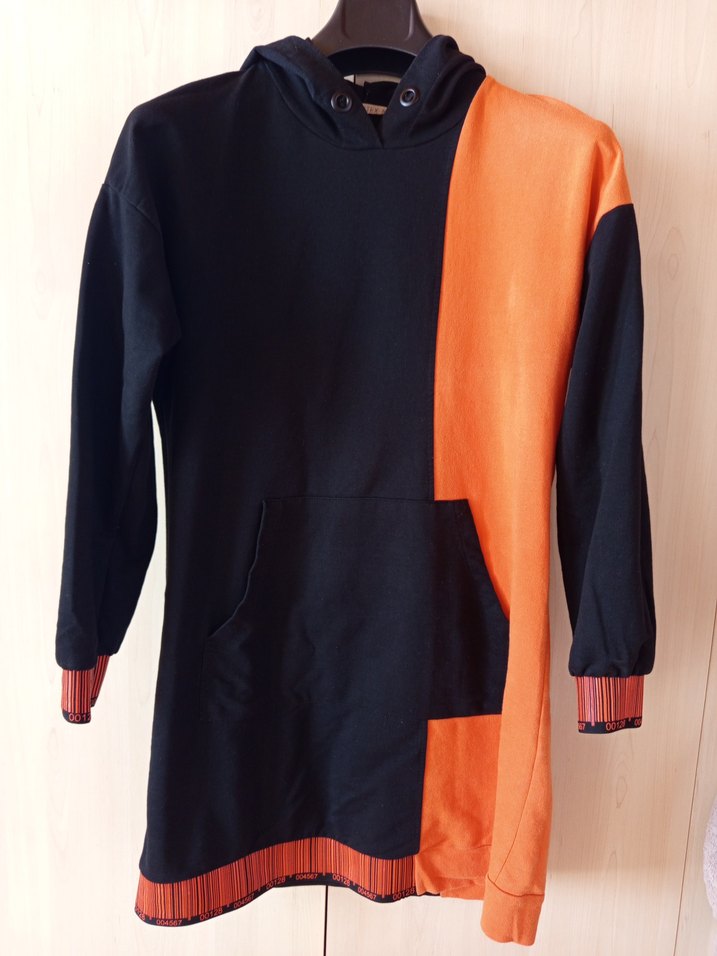 Bu kadın sweatshirtü uzun kollu, oversize kesim ve drapeli tasarıma sahiptir. Siyah ve canlı turuncu renkleri birleştirir. Yumuşak kumaştan üretilmiştir. #tunik #kapsonlu cepli #sweat #spor #tesettür. Sadece bir iki kez giyildi, küçük almışım. Siyah turuncudur rengi.
