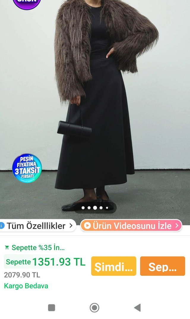 Siyah tüylü detaylı ve standart içi astarlı suni kürk hiç kullanılmadı hediye geldi etiket mevcut değildir