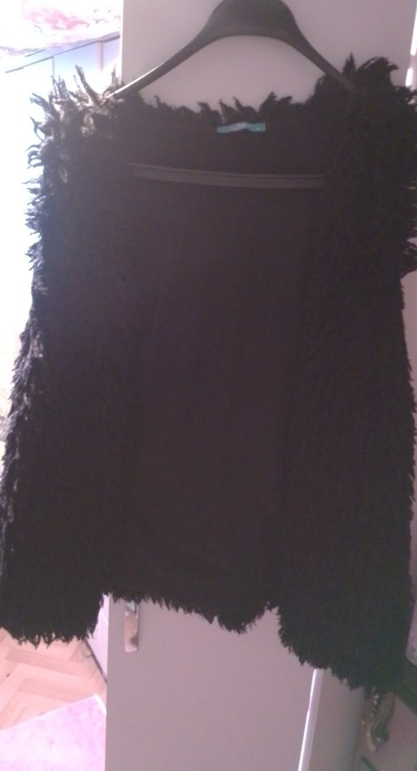 Siyah Tüylü Midi Kadın Yelek