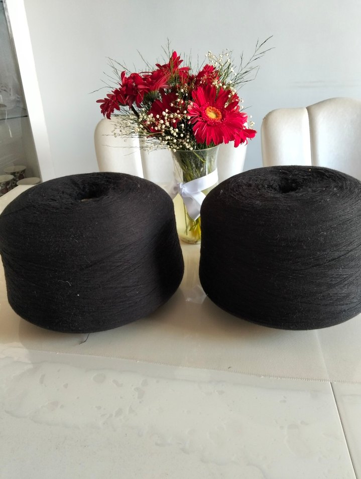 örgü ipi. tüysüz siyah renk. ince örgü ipi. istediğiniz kalınlıkta sarabilirsiniz. tekstil atolyemizdeki işlerimizden kalan ipler. kilosu 95tl
