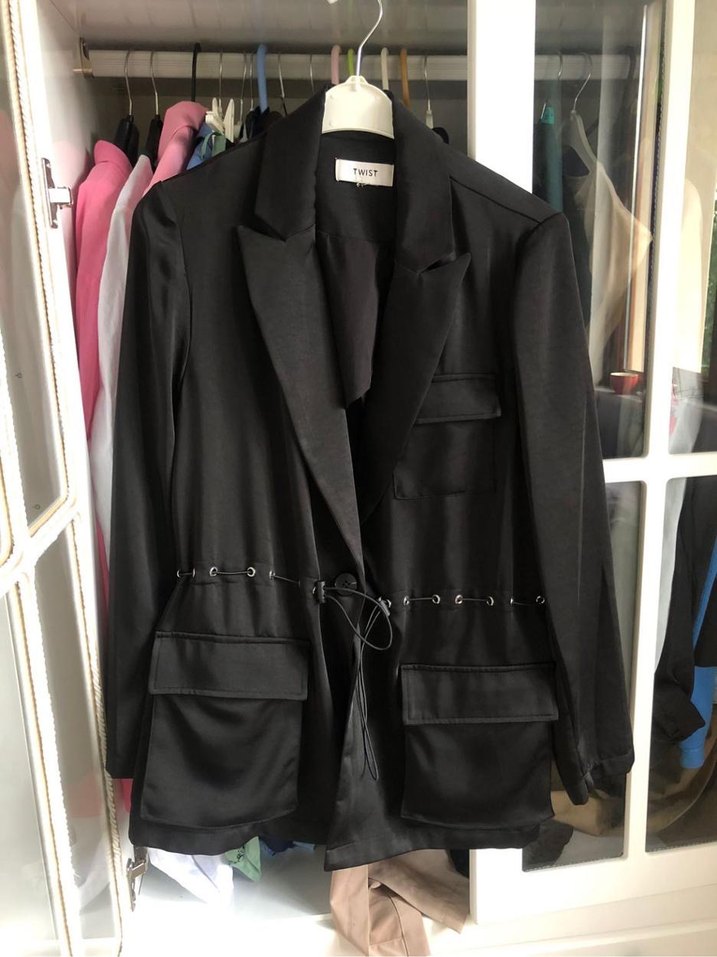 Siyah kadın blazer, kesimli yaka İpeksi dokulu regular bir iki kere giyildi twist marka small medium bedene uygun