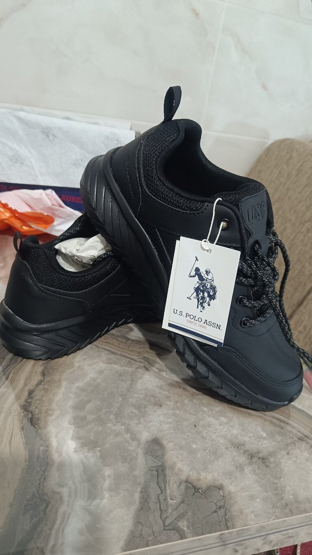 Baskılı detaylara sahip siyah U.S. Polo Assn. flodan alindi erkek spor ayakkabısı, kauçuk tabanlı ve cırt cırtlıdır. Athleisure ve sokak stili için uygundur.
