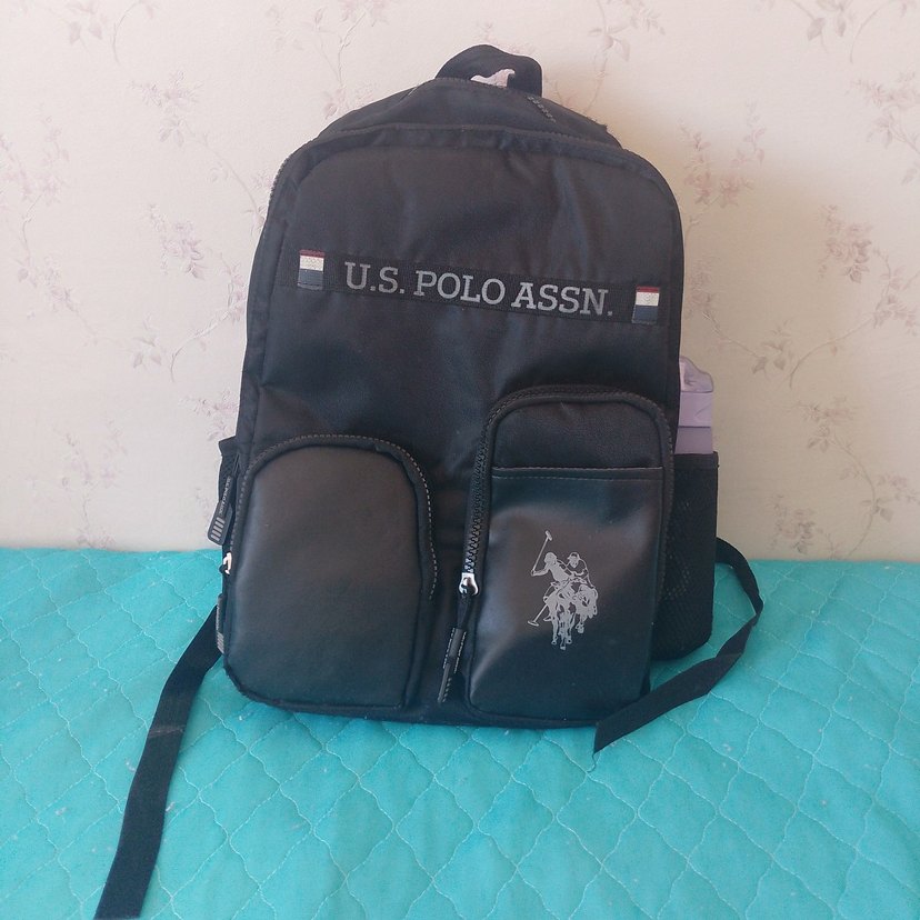 U.S. Polo Assn. markalı siyah okul sırt çantası, çoklu fermuarlı cepleri ve ayarlanabilir askıları ile kullanışlıdır.