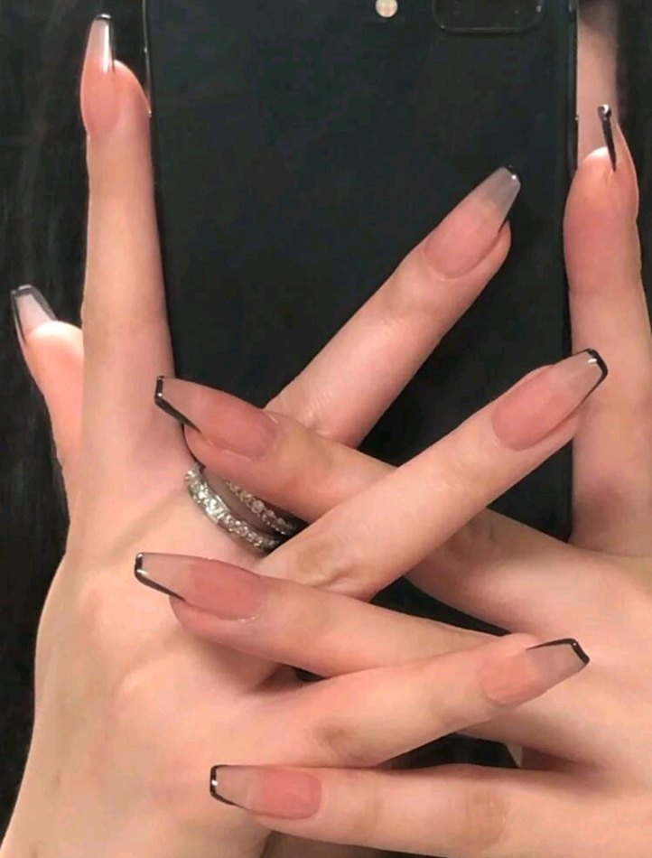 Siyah Uçlu Şeffaf Takma Tırnak 24'lü