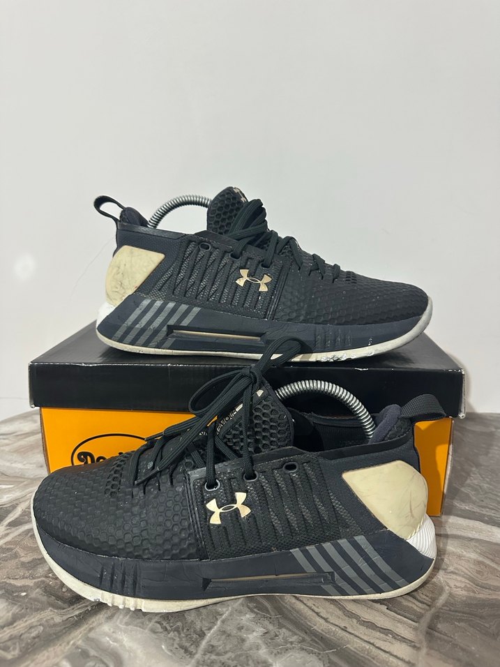 Siyah Under Armour erkek spor ayakkabısı, bağcıklı ve kauçuk tabanlıdır. Trendy casual ve streetwear tarzları için uygundur. Spor aktiviteleri için ideal.