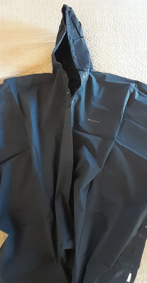 Siyah renkli, sentetik kumaştan üretilmiş, kısa kollu ve bisiklet yaka midi boy unisex yağmurluktur. Bol kesim ve drapeli tasarıma sahiptir. ️