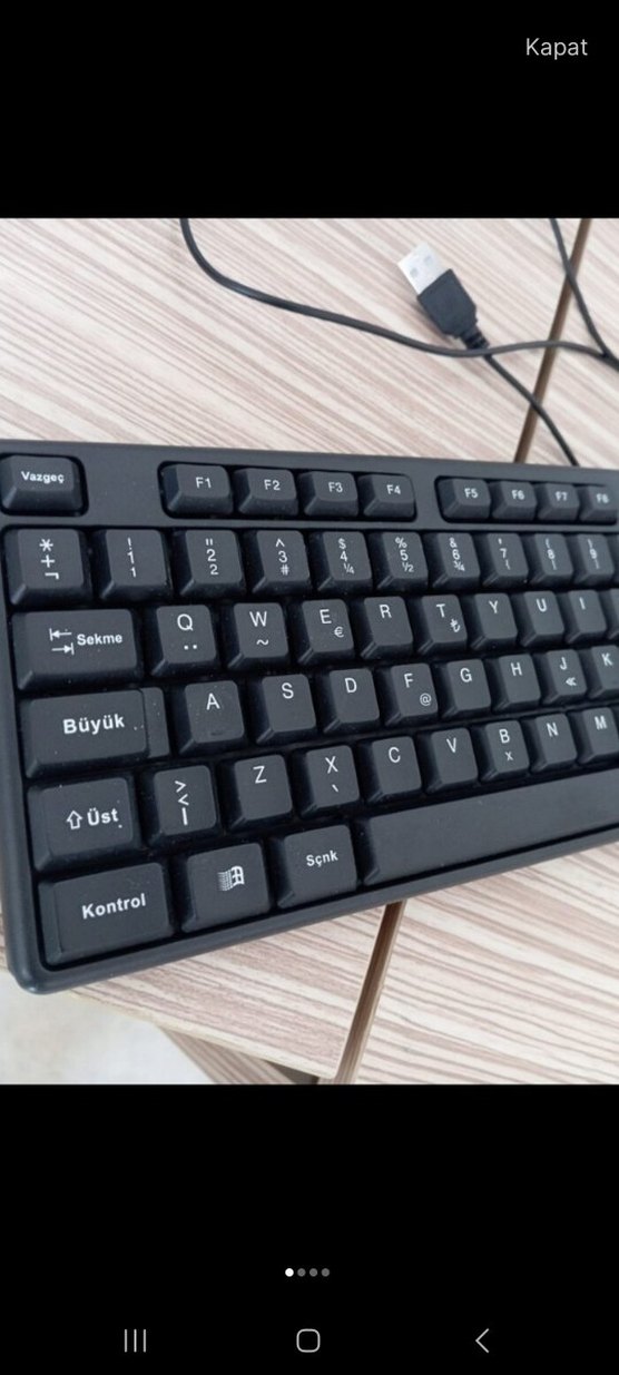 USB kablolu, Q Türkçe düzeninde siyah klavye. Harfler, sayılar ve kontrol tuşları bulunur. Standart bilgisayarlarla ve laptoplarla uyumludur. Tuslari çıkarılabilir katiplik sinavi icin almıştım. ⌨️