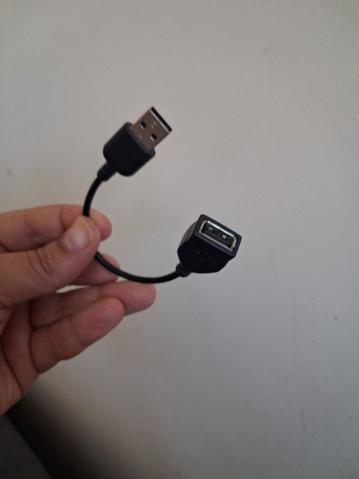 Ergonomik tasarımlı, erkek ve dişi USB konnektörlü kısa siyah uzatma kablosu.