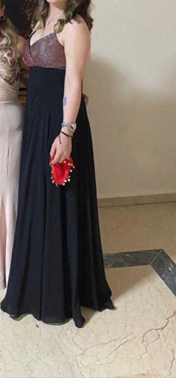 Boncuk işlemeli, askılı kolları ve straplez yakasıyla siyah, vücuda oturan uzun abiye elbise, gösterişli etkinlikler için idealdir. ✨ sırtı bağlamalı göğüs dekolteli kuru temizleme yaptırıp o şekilde göndereceğim