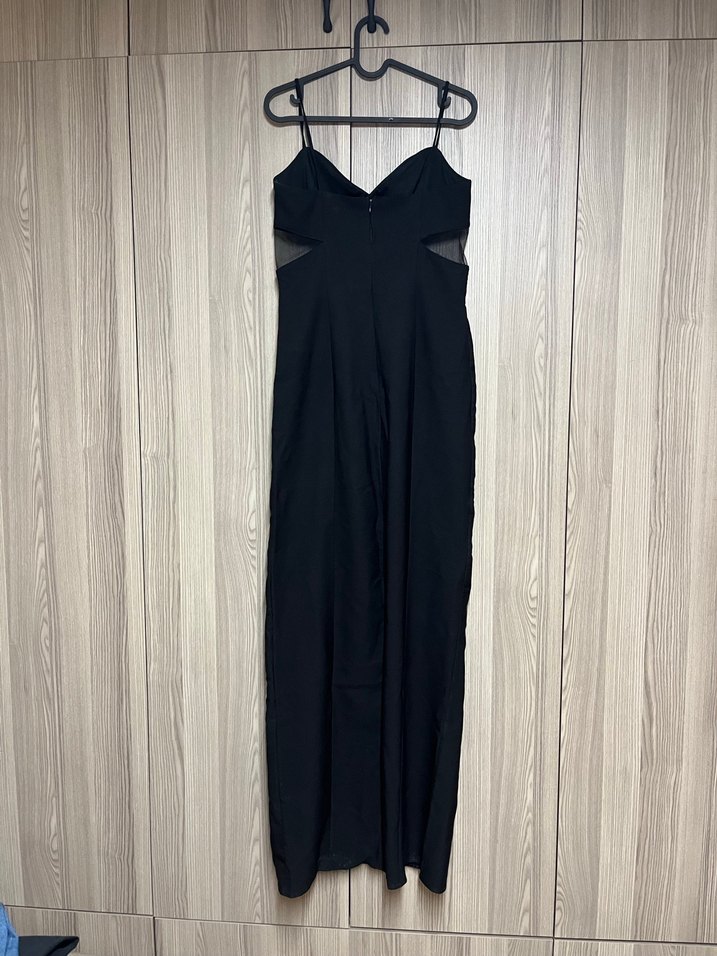 Bu abiye elbise, V yakalı ve askılı kollarıyla dikkat çekiyor. Yırtmaç detayı ve koyu renkli, desensiz gotik tarzıyla romantik akşamlar için uygun. Bir kere giyildi. 164 boy 64 kilo.