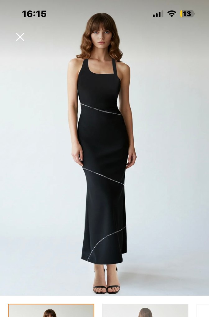 Siyah Uzun Askılı Drapeli Kadın Elbise