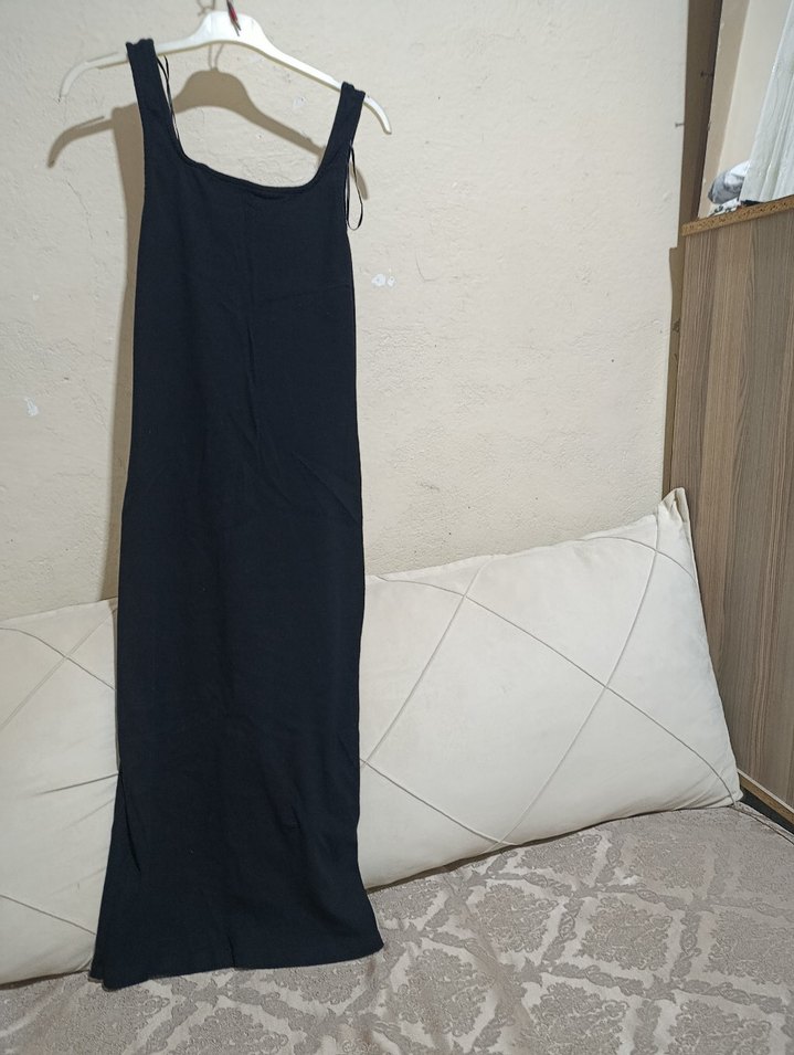 Siyah Uzun Askılı Kadın Elbise