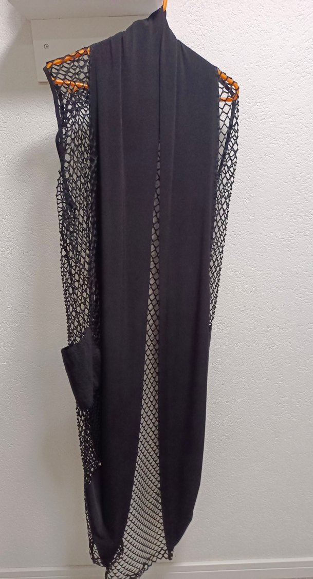 hiç giyilmedi 42-44 beden yelekSiyah, sentetik kumaştan yapılmış, drapeli tasarımlı, halter yaka ve askılı kollu, fit kesim uzun tulum.