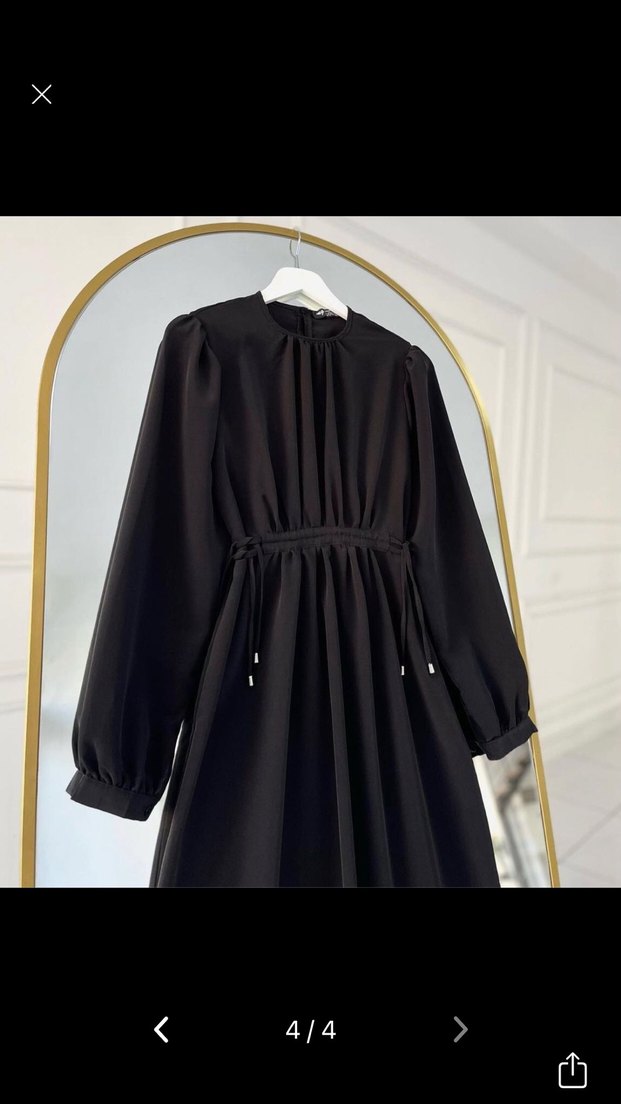 Merve Gültekin Siyah uzun elbise, yüksek yakalı ve uzun kollu, salaş kesim ve drapeli tasarıma sahip, pürüzsüz sentetik kumaştan üretilmiştir, ofis kullanımı için uygundur.