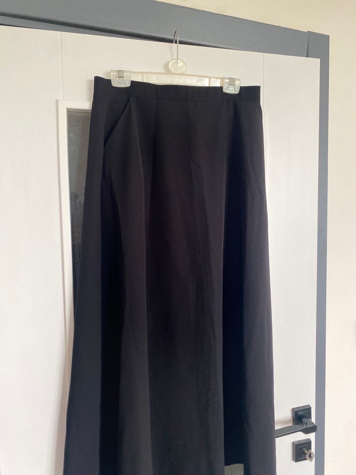 Siyah uzun, drapeli ve regular fit kesime sahip kadın eteği. İpeksi kumaştan üretilmiş, minimalist ve normcore tarzlarına uygun, ofis kullanımı için ideal. Bel 41 cm boy 99 cm