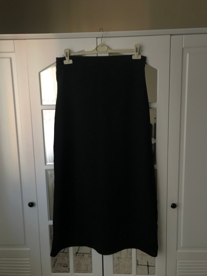 Siyah uzun etek, drapeli tasarımı ve rahat kesimiyle yumuşak ve sıcak bir kumaştan üretilmiştir. Minimalist tarzıyla günlük kullanım için uygundur.