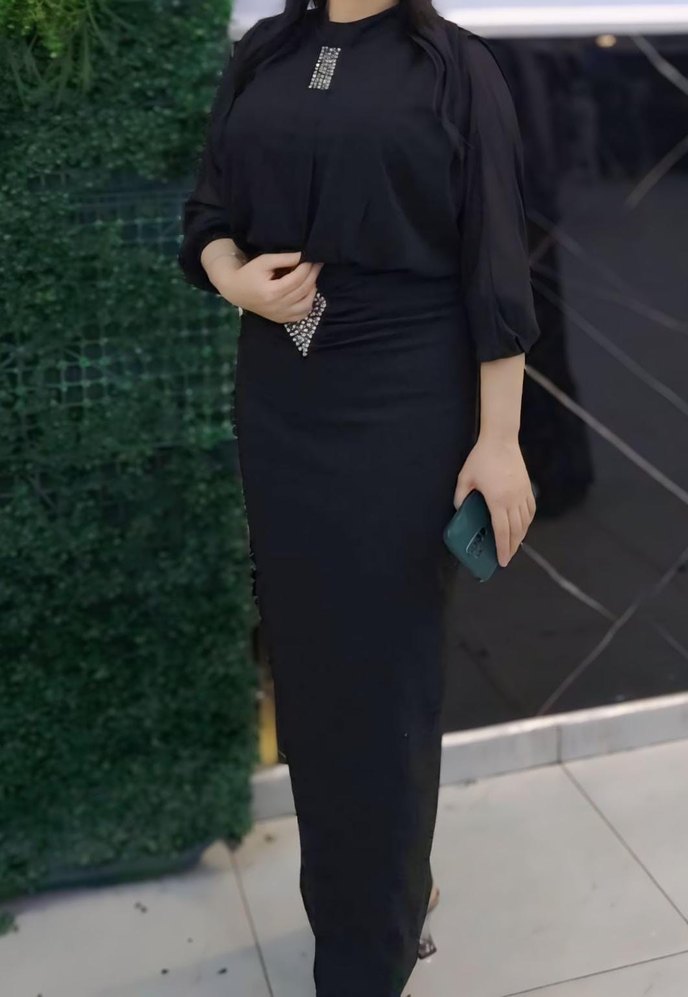 Siyah Uzun Drapeli Ofis Elbisesi