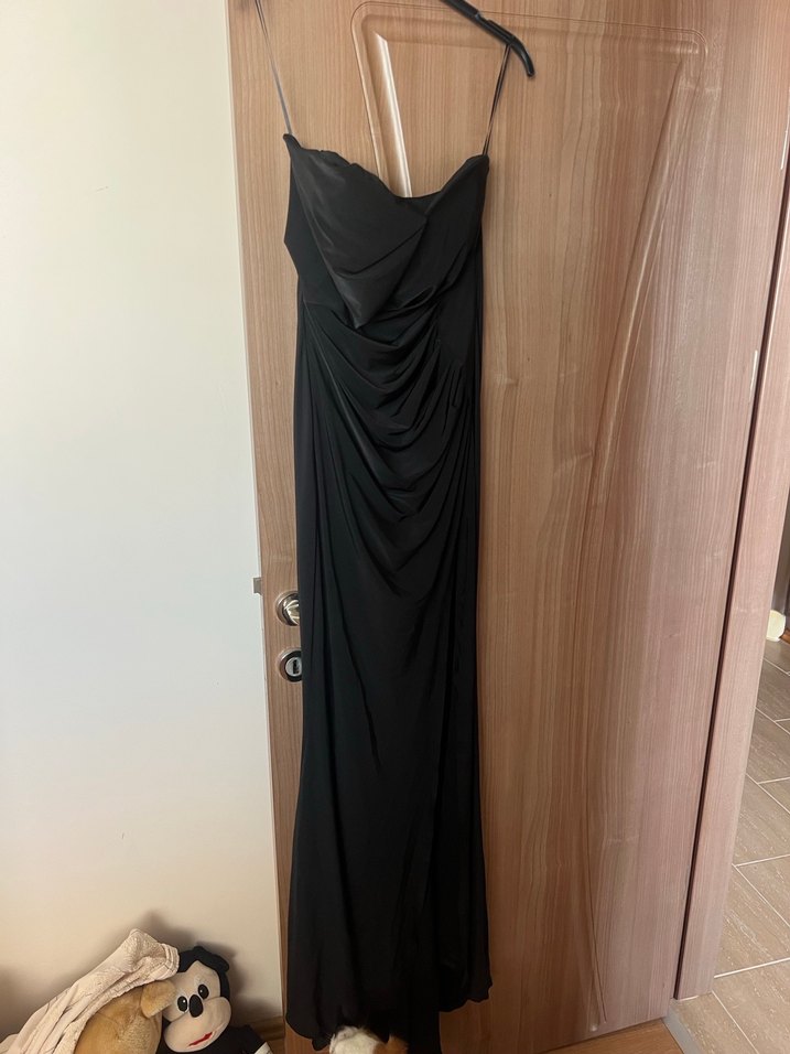 Siyah Uzun Drapeli Straplez Kadın Abiye Elbise
