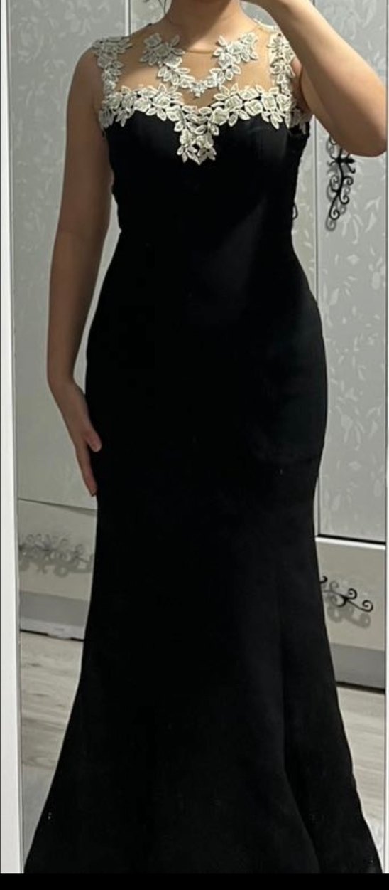 Siyah Uzun Drapeli V Yaka Abiye Elbise