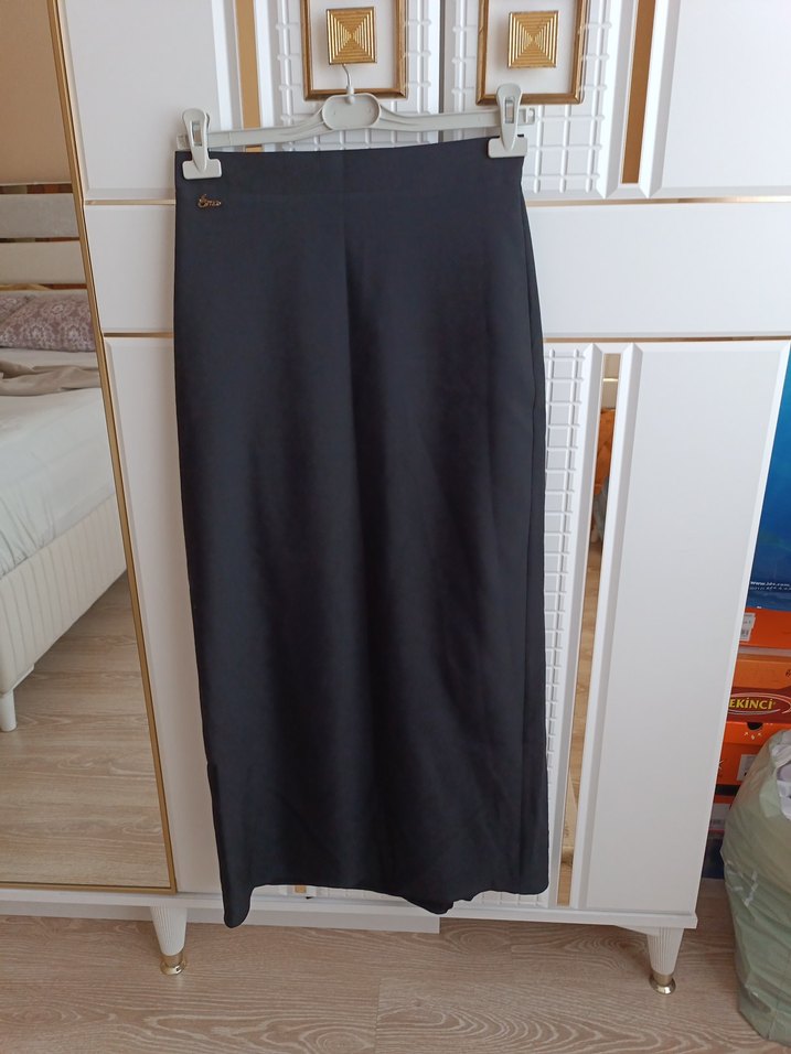 40 beden boyu 98 cm arkası gizli yırtmaçlı Siyah uzun etek, düz kesim ve sentetik kumaştan yapılmıştır. Ofis için uygun, zahmetsiz şıklık sunar.