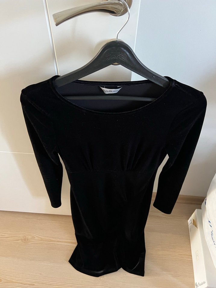 Siyah, düz ve uzun kollu elbise dar kesimi ve yuvarlak yakasıyla minimalist goth tarzını yansıtır. Rahat sentetik kumaştan üretilmiştir.