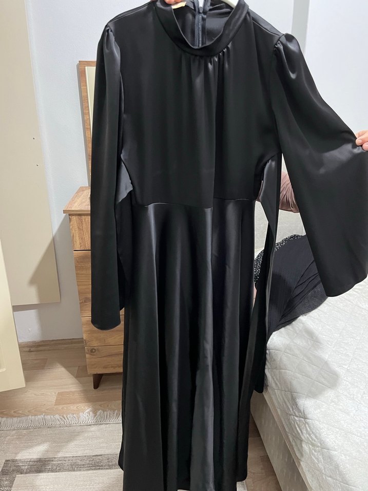 Siyah uzun elbise ipek kumaştır 1 kere tek giyilmiştir
