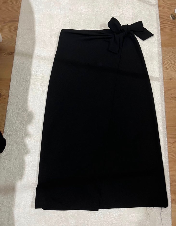 Eteğin ön kısmı gözüktüğü gibi kapaklı gibidir. 1-2 defa temiz kullanılmıştır. Hiç bir kusuru yoktur 38-40 bedendir