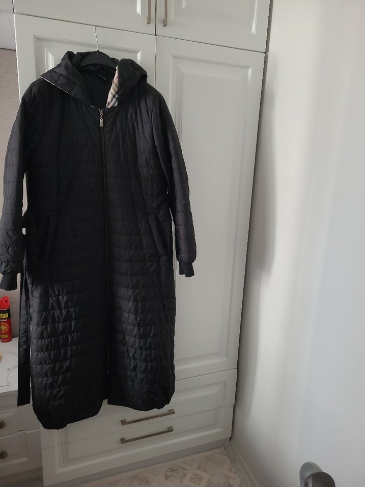 Siyah uzun kesim, fermuarlı, yüksek yakalı ve uzun kollu kadın mont. Yumuşak ve sıcak kumaştan, sokak modasına uygun, rahat ve şık tasarım.