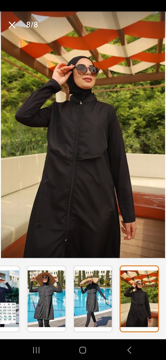 Siyah uzun fermuarlı Tesettür mayo. 2 defa kullandım. Kullanımı rahat bonesi ile birlikte göndereceğim. çok çabuk kuruyor.