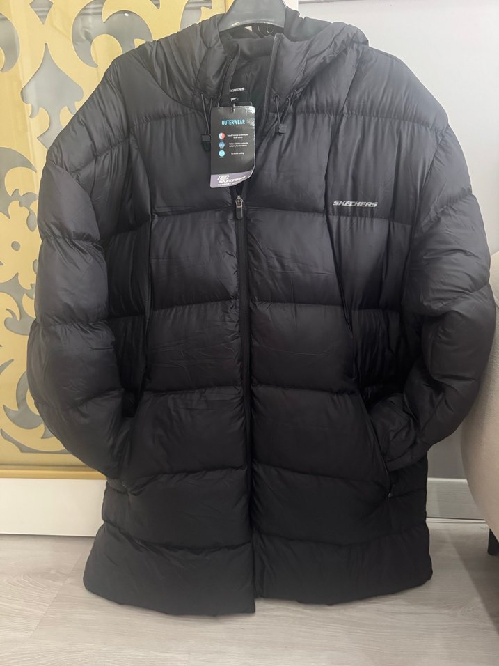Siyah, uzun boylu, fermuarlı kışlık mont yumuşak yapıya sahip iki koltuk arası 68 cm.boy83 cm.ürün XL yazıyor fakat 2XL uyumlu ona göre alım yapın iade kabul olmaz