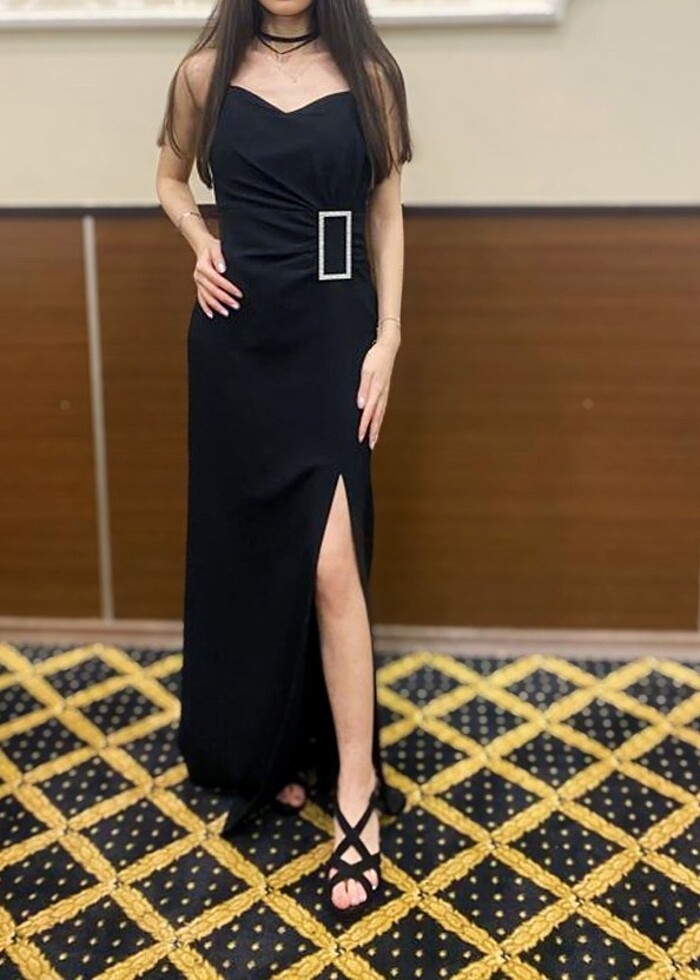 Sadece 1 defa giydim. Yırtmaçlı ve aksesuarlı bir abiyedir. Bedeni 34. Askıları ayarlamalı.