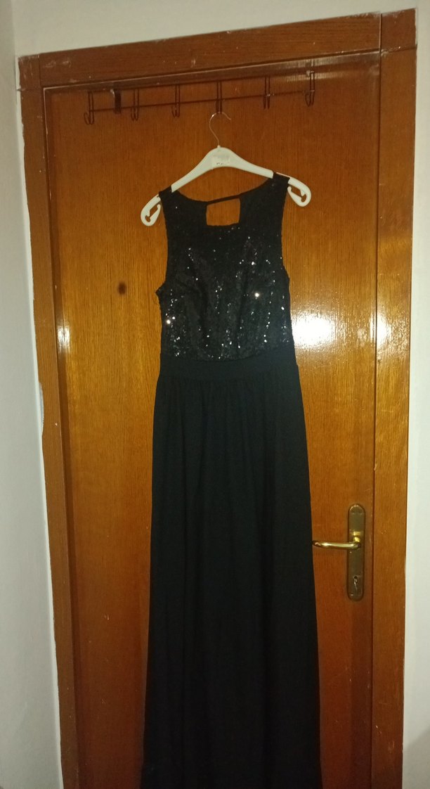 Siyah, kolsuz, uzun ve vücuda oturan abiye elbise. Straplez yaka ve drapeli detaylarla gotik parti tarzı sunar. ✨
