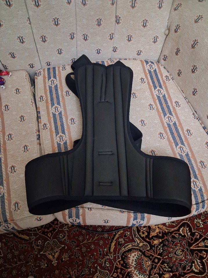 Siyah, uzun boylu ve desen içermeyen bu hemşire korsesi, vücuda oturan yapısıyla destek sağlar.