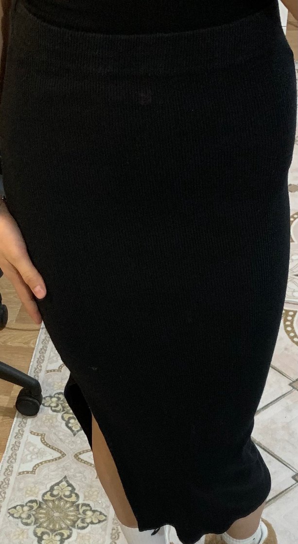Siyah uzun etek, yumuşak sentetik kumaştan yapılmış, günlük sokak stiline uygun rahat ve şık bir görünüm sunar.