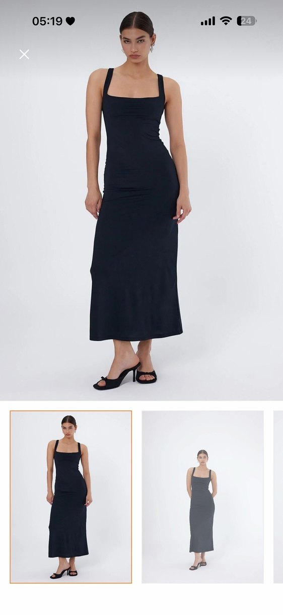 Siyah uzun elbise, ince askılar ve tekne yaka ile sıkı oturan bir kesime sahiptir. İpeksi kumaştan yapılmış, romantik akşamlar için zahmetsiz şıklık sunar. LAMODEMAPASS TRENDYOL ürünü