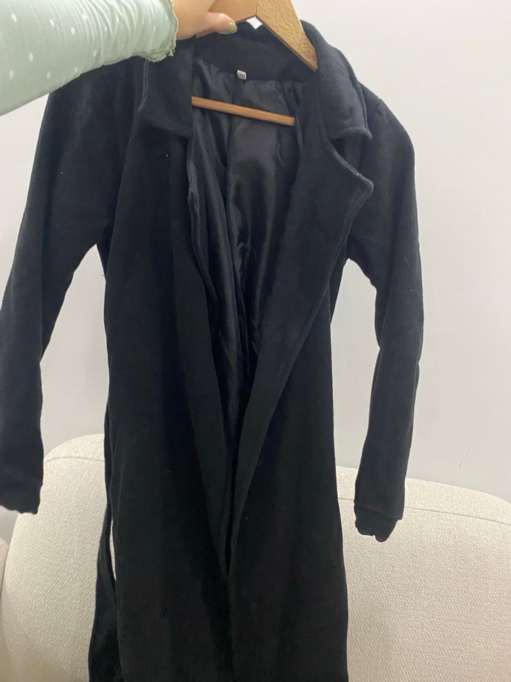 Yumuşak iç astarlı, klasik yakalı siyah uzun kaban. Sonbahar havalar için uygun. S beden ancak kalıbı küçüktür.