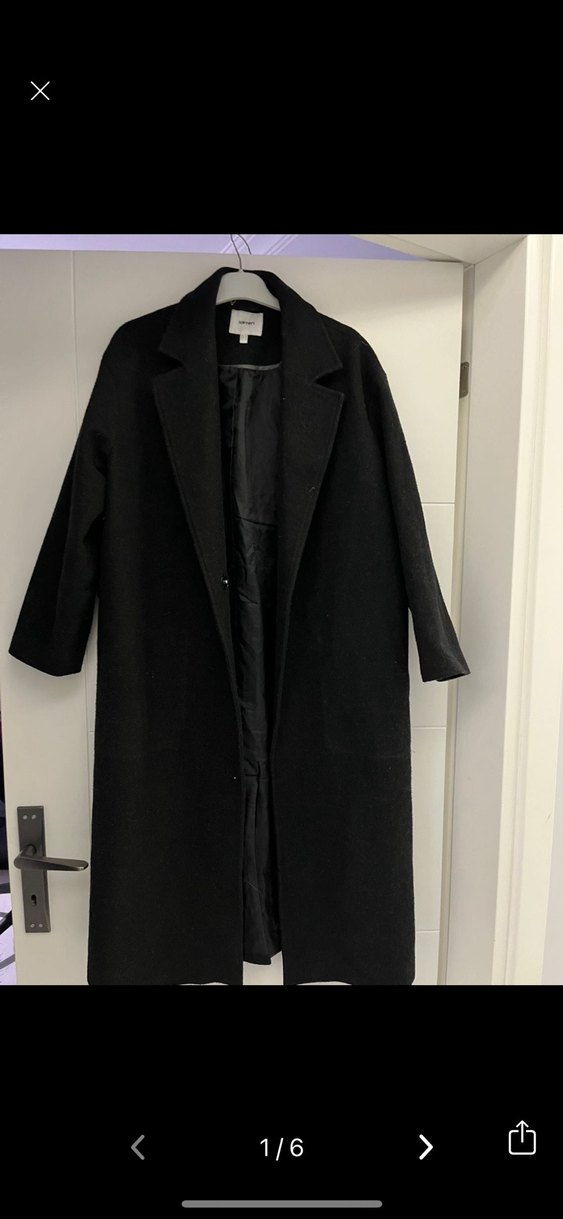 Siyah uzun kaban, yakalı ve tam astarlı olup şık ve klasik bir görünüm sunar.