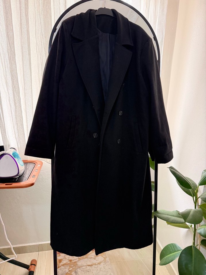 Çift düğmeli, klasik yakalı siyah uzun kaban. İç kısmı astarlıdır ve yan ceplere sahiptir. Boy 135 cm