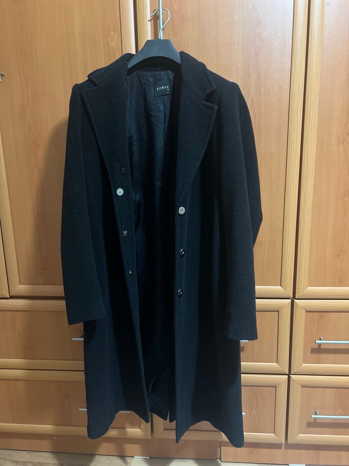Klasik yaka ve düğme kapamalı uzun siyah kaban, iç kısmında astarda küçük yırtıklar olmuş fotoğraflardan göstermeye çalıştım. Sorunuz olursa yardımcı olurum
