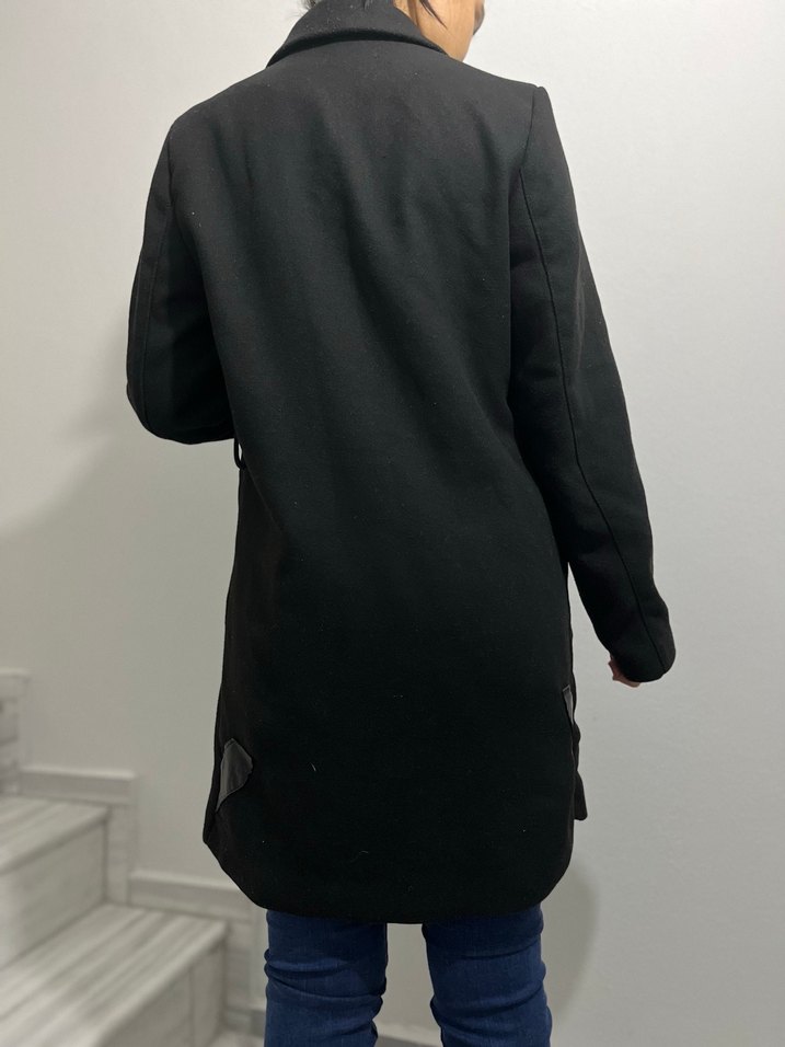 Siyah uzun kaban, düz kesim ve yumuşak dokusuyla sıcaklık ve rahatlık sağlar. Bir kere giyildi