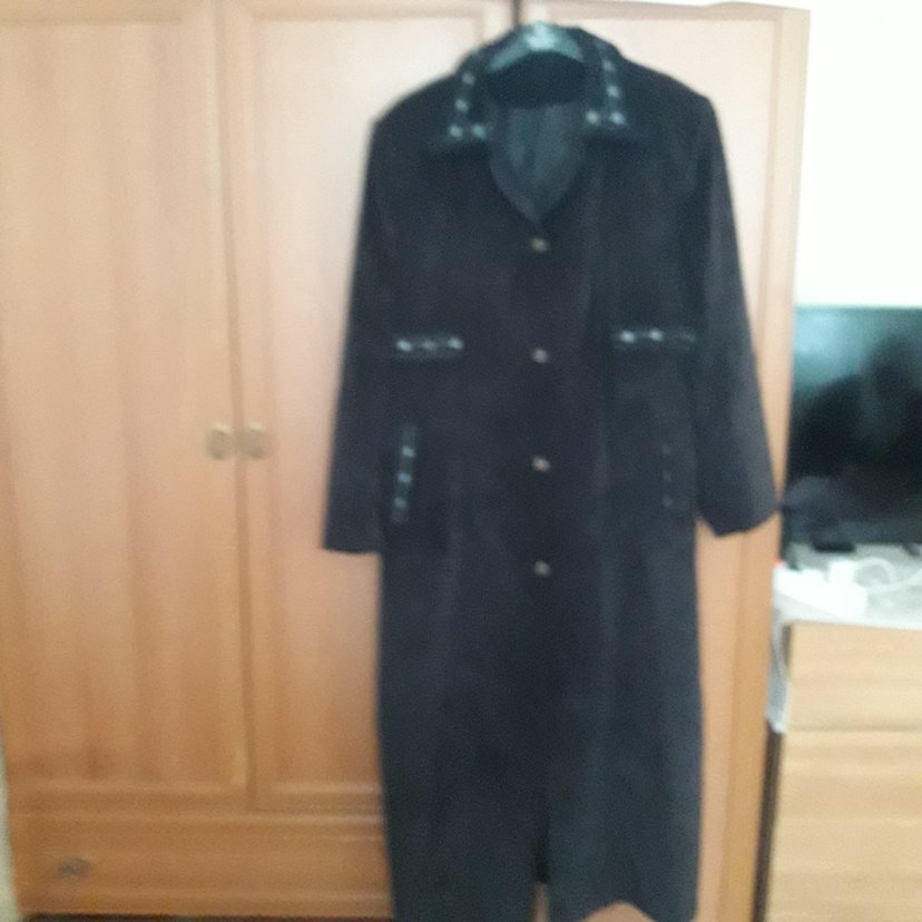 Siyah Uzun kadife Düğmeli Kadın Kaban
