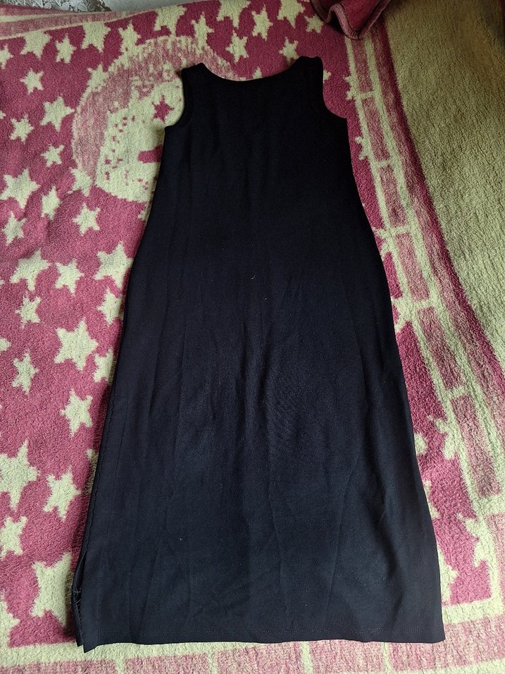 Siyah, straplez yaka ve kolsuz, dökümlü detaylara sahip, düz uzun ve vücuda oturan kadın elbisesi. Pürüzsüz sentetik kumaştan üretilmiştir. yirtmacliydi diktim ama acilabilir dar geldigi için satıyorum.