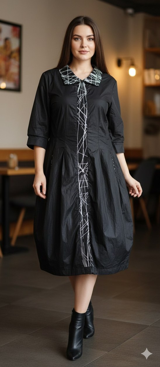 Siyah Uzun Kadın Elbise, Drapeli, Ofis Şıklığı