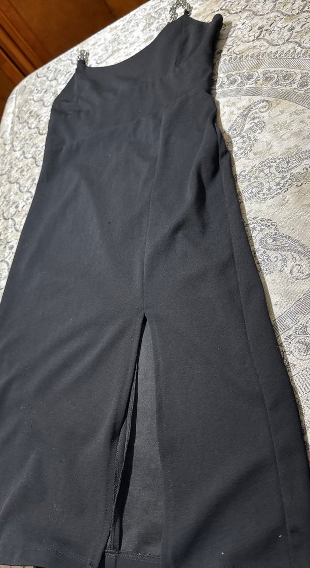 Siyah Uzun Kadın ElbiseYırtmaçlı