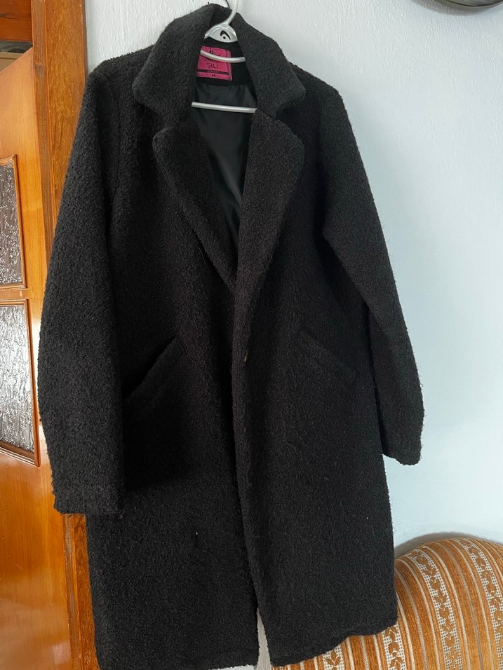 Siyah uzun kadın kaban, yumuşak, sıcak tutar. Normal kesim ve uzun kolludur, günlük kullanım için uygundur. Marka temsili