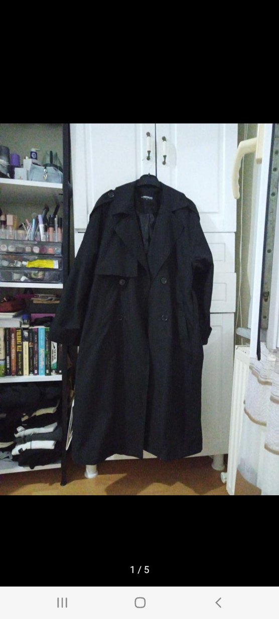 Siyah uzun kadın kaban, rahat kesimi ve notç yaka detayıyla, yumuşak ve sıcak kumaştan üretilmiştir. Uzun kollu ve desensiz tasarımıyla zahmetsiz şıklık sunar.