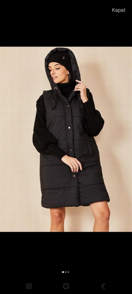 Siyah Uzun Kadın Kapitone Yelek