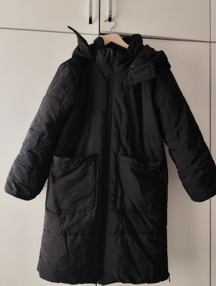Siyah uzun kışlık mont, çıtçıtlı yakaya ve bol kesime sahiptir. Fermuarlı önü ve büyük cepleriyle sıcak tutan yumuşak kumaştan üretilmiştir. ❄️